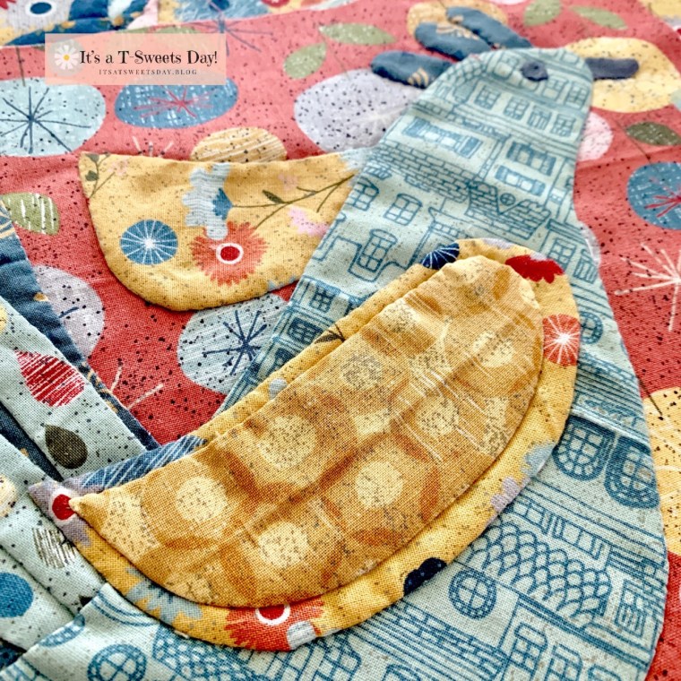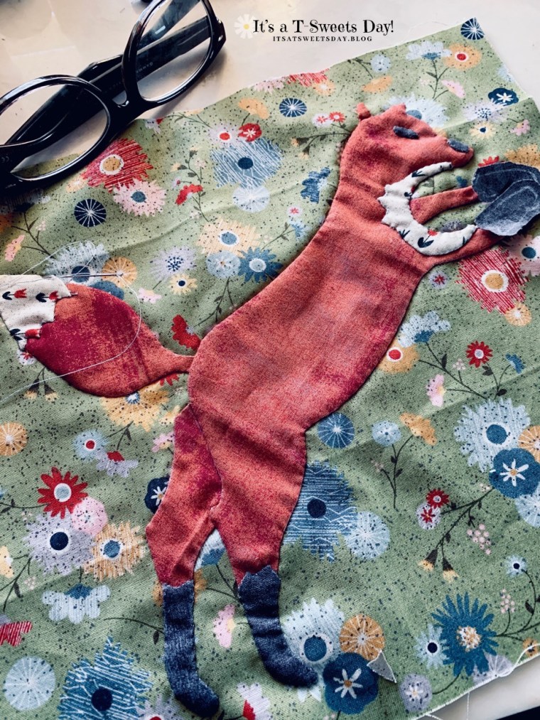 I have now finished all 12 of my center appliqué blocks. The last one is one of my favorites.