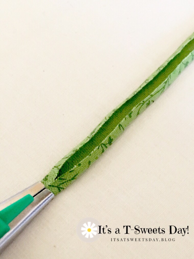 Here is a Totally Tipster Tip for you— I mark my bias tape makers with a scrap piece of fabric!
