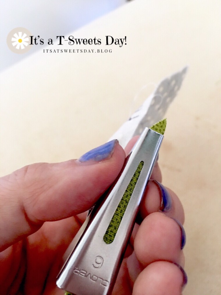 The next step is to snip one end of a strip on an angle and push it into the metal.