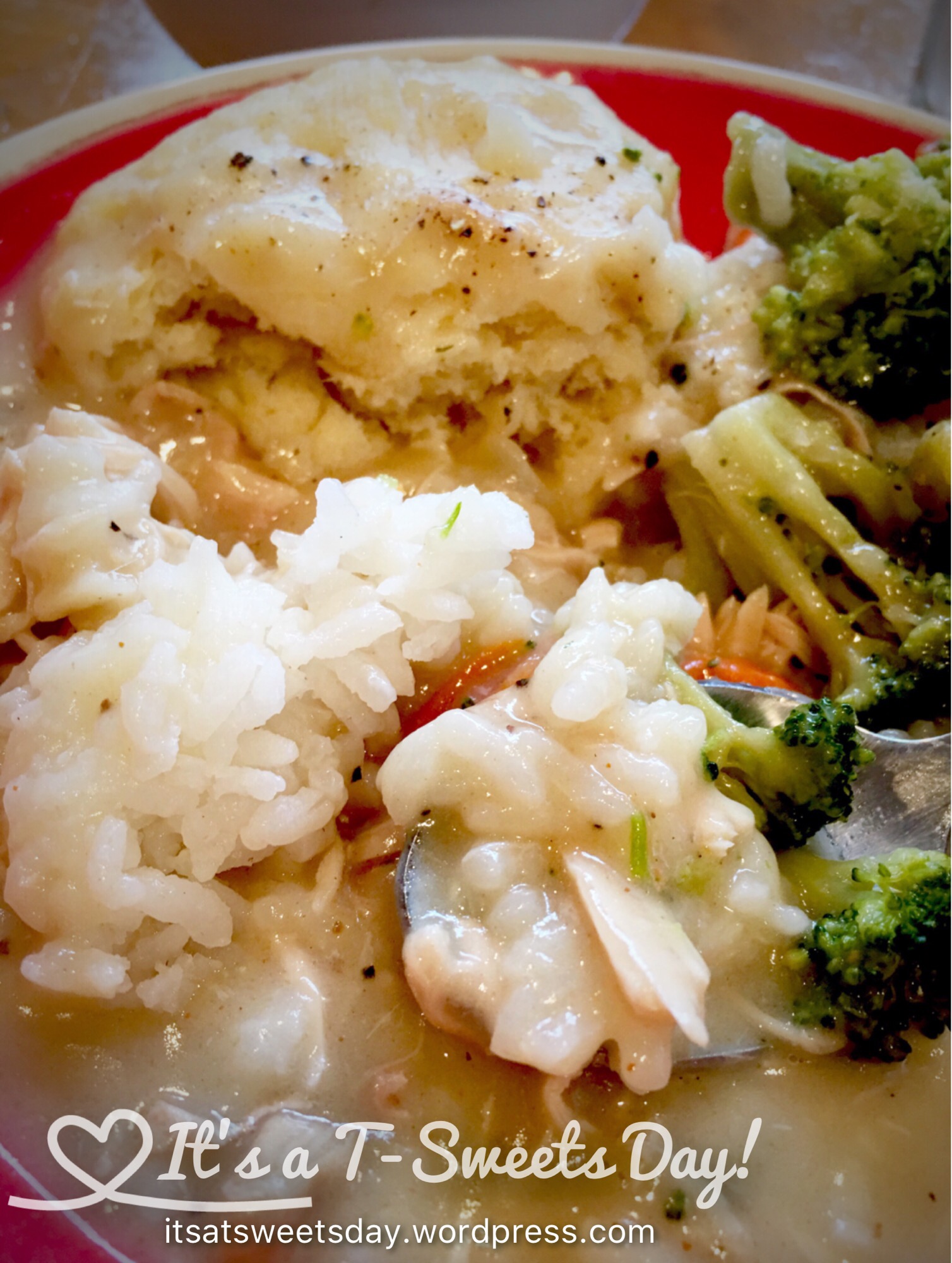 That old souvenir cookbook has brought many many evenings of happy meals to our family. One of our favorites is this recipe for Chicken ‘n Dumplings. I hope you love it as much as our family does.