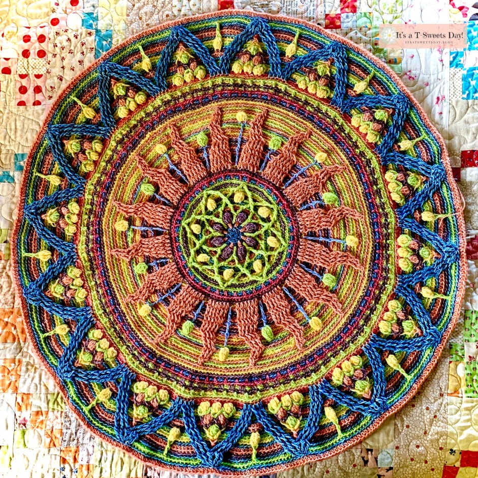 I have quite a bit more to do, but I really am enjoying my evenings stitching on my mandala. If any of you would like to make a Sunny Mandala Blanket of your own, you can find the pattern here.