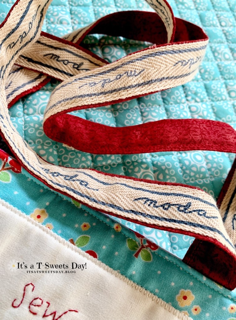 Even the handles are fun. She used Moda ribbons to make them a bit sturdier. Isn’t she smart?!