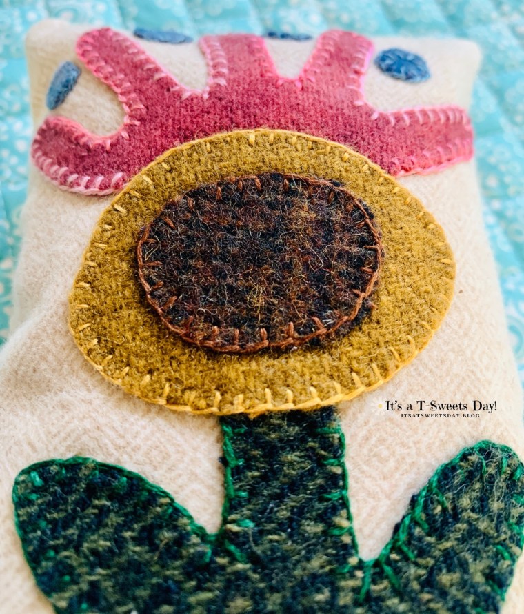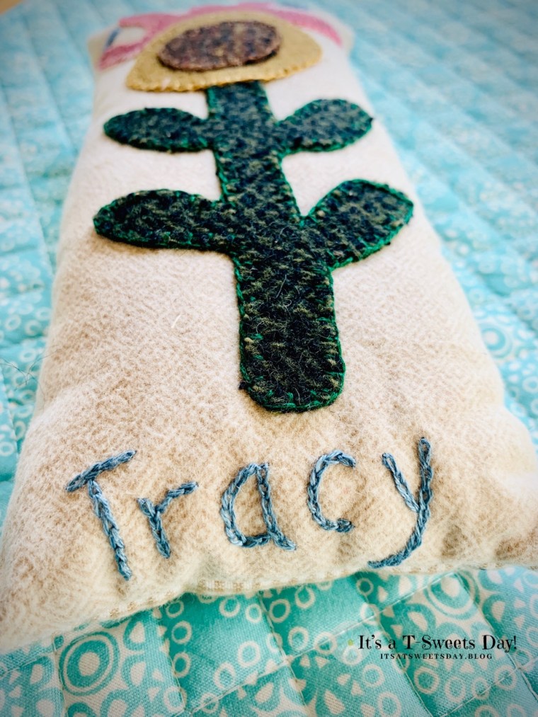And the cherry on top is this absolutely amazing pin cushion! Wool appliqué is my favorite. She did a great job!