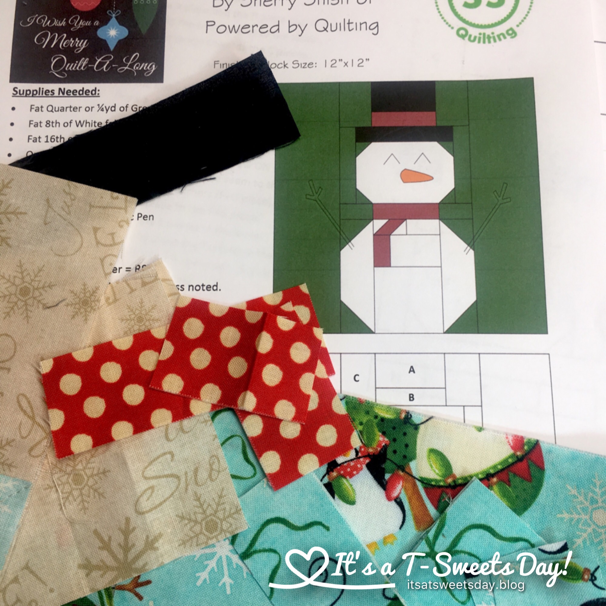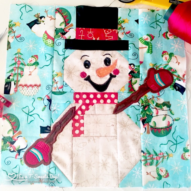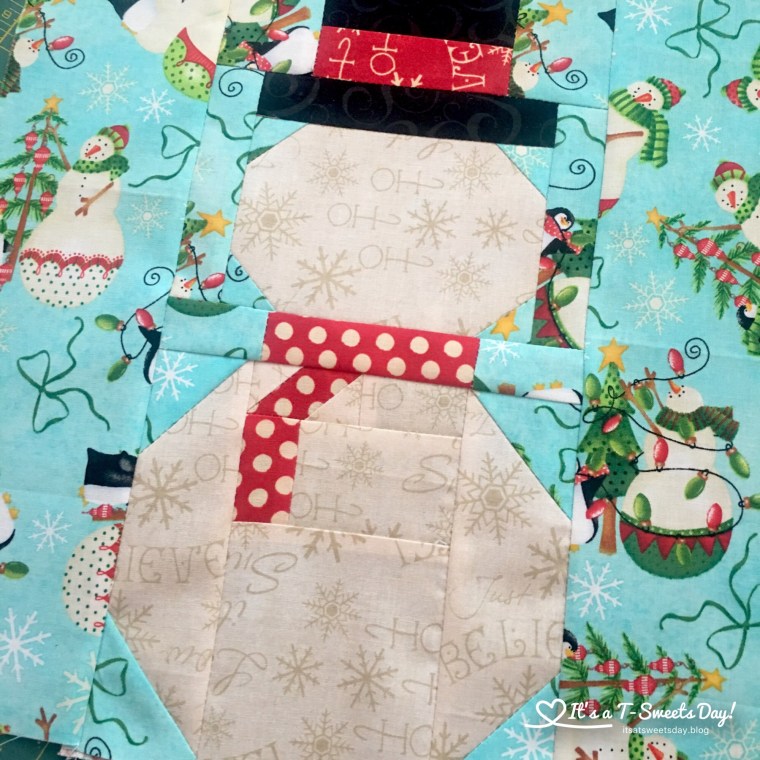 I have been singing “Once There Was a Snowman” and “Frosty the Snowman” all day as I have been sewing my snowman block for the I Wish You a Merry Quilt Along. This block was designed by Sherry at Power by Quilting.