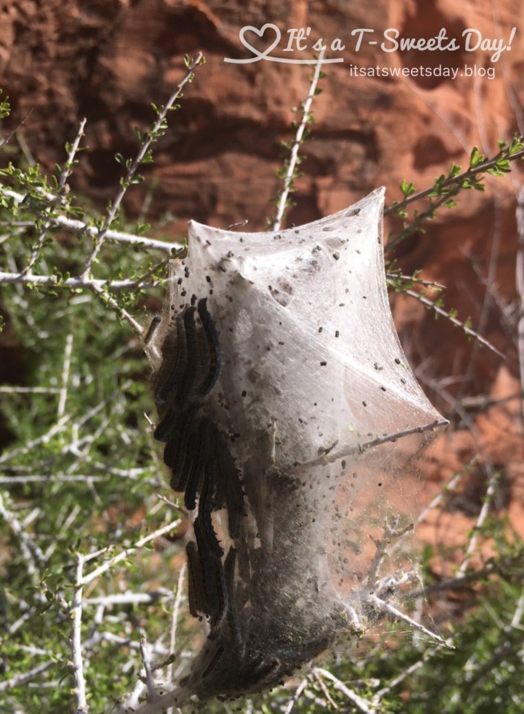 Those red sand stone rocks were beautiful!! We even spotted a caterpillar nest! I wonder what kind of moth or butterfly they will be?